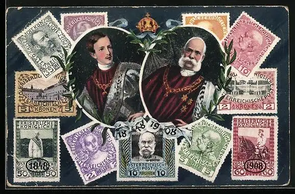 AK Kaiser Franz Josef I. von Österreich, Österreichische Briefmarken
