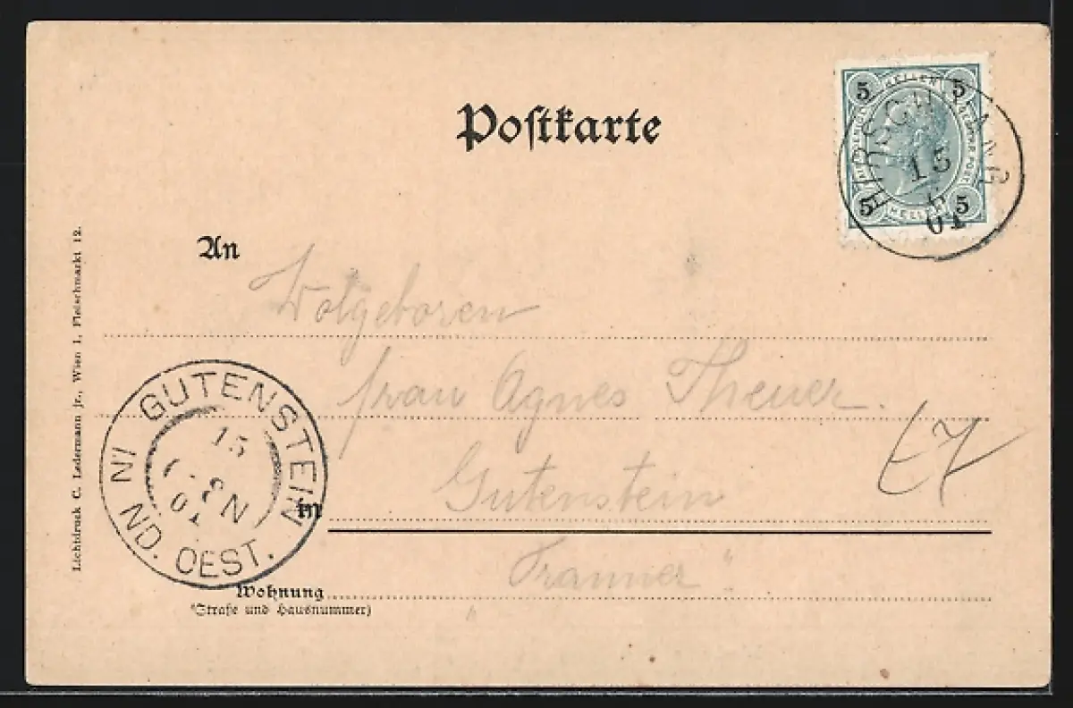 alte Ansichtskarte, gelaufen 1901, guter Zustand
