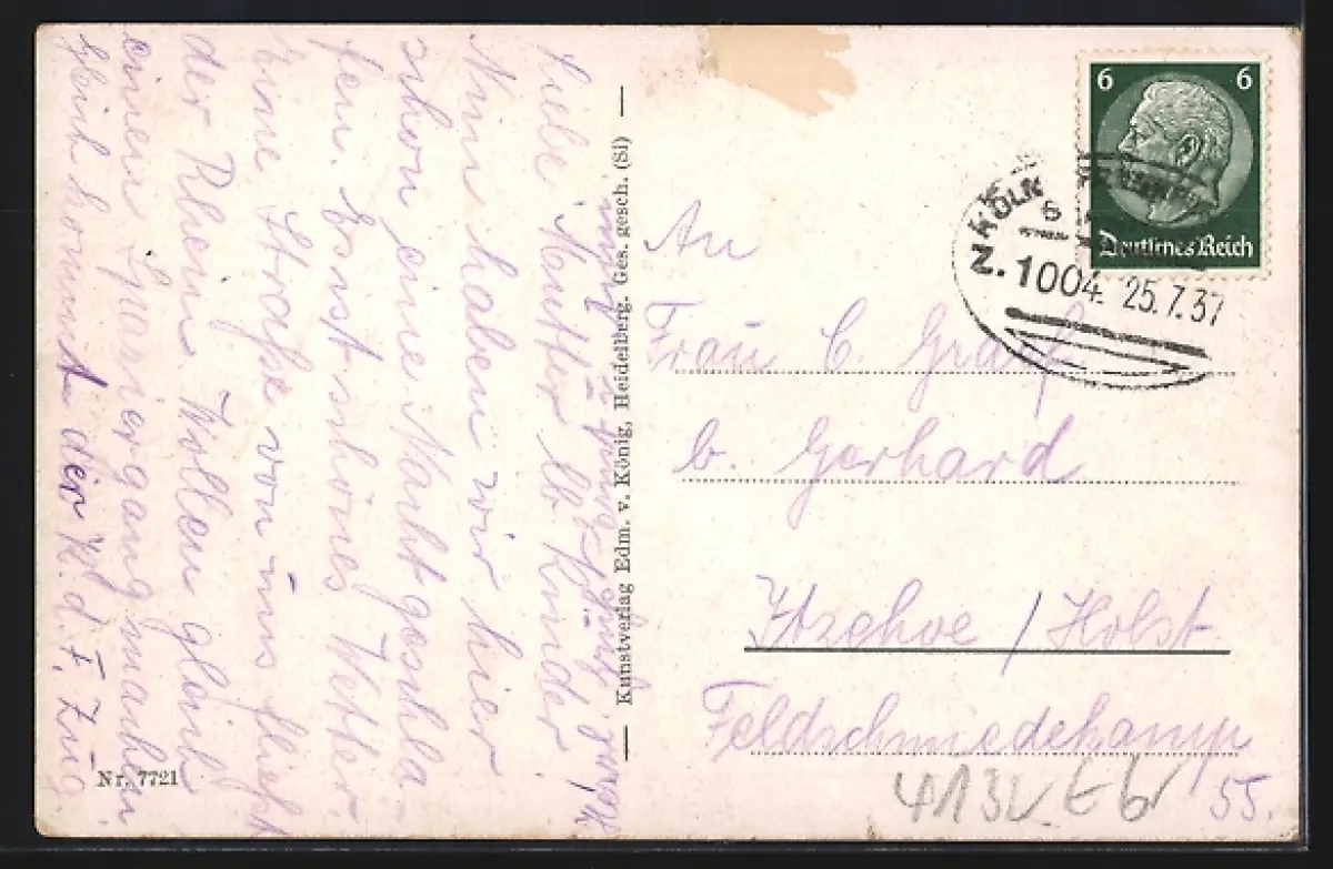alte Ansichtskarte, gelaufen 1937, rückseitig Oberflächenschaden, guter Zustand