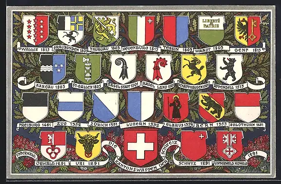 AK Kantonswappen der Schweiz auf Eichen-Hintergrund