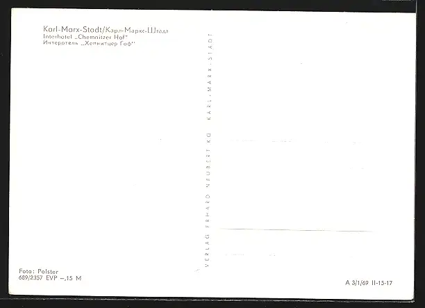 AK Karl Marx Stadt, Interhotel Chemnitzer Hof