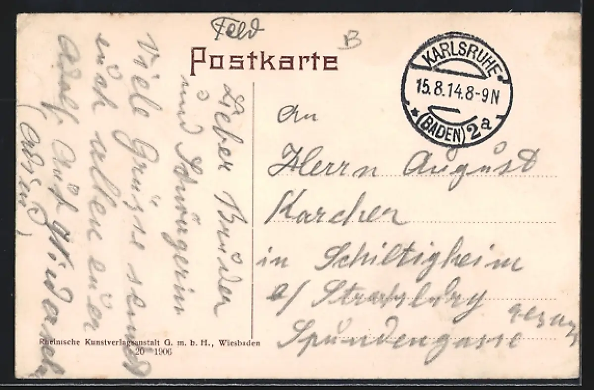 alte Ansichtskarte, gelaufen 1914, Eckknick oben re., Stempelspur, guter Zustand