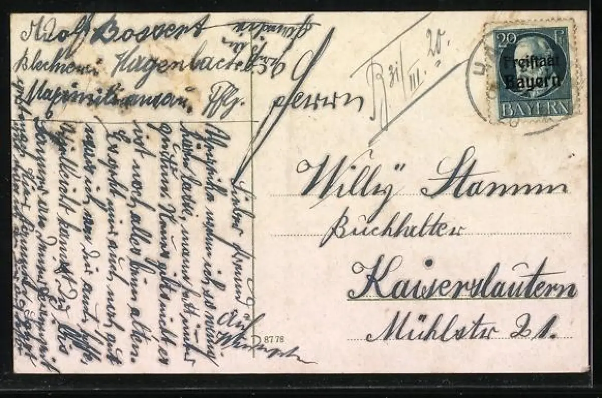 alte Ansichtskarte, gelaufen, rückseitig Oberflächenschaden, Albumspuren, guter Zustand
