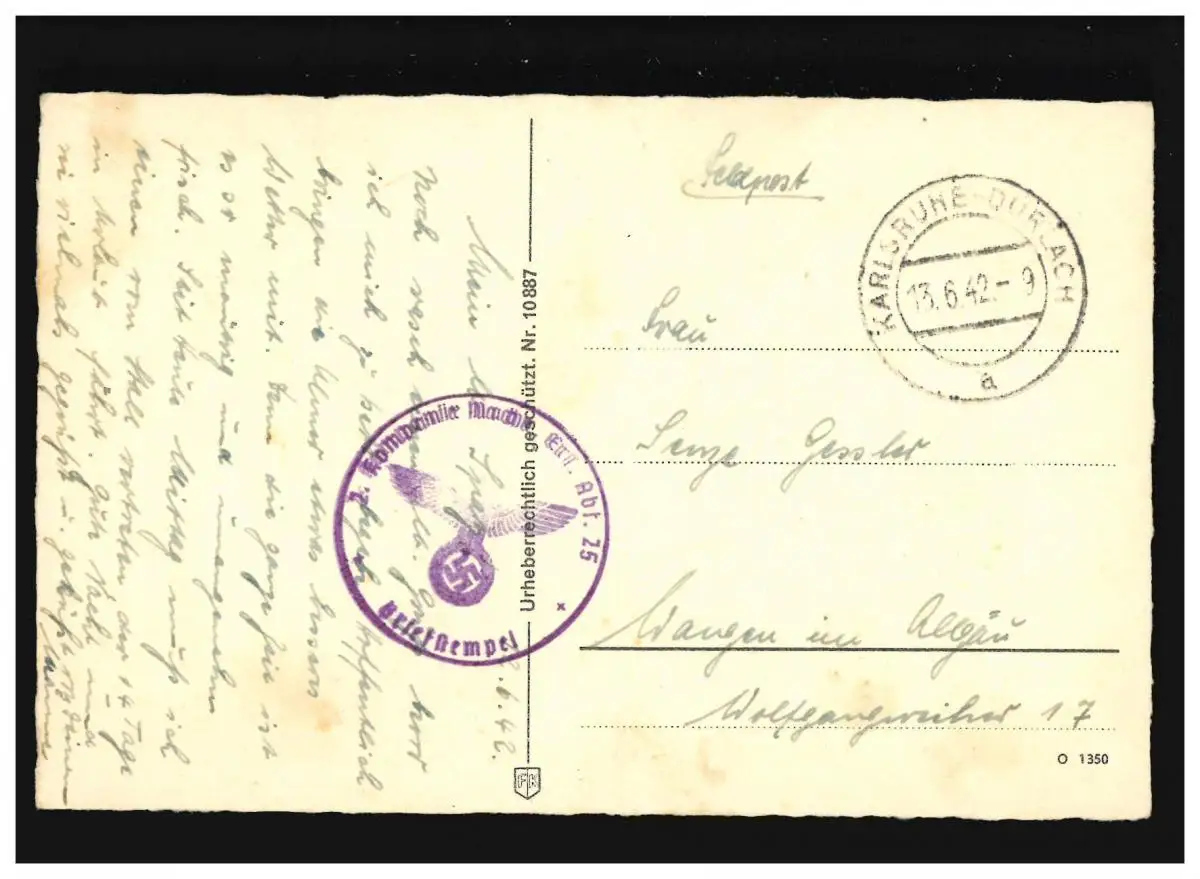 AK Karlsruhe à Baden, Rheinhafen, Feldpost, Karlsruhe Durlach 13.6.1942