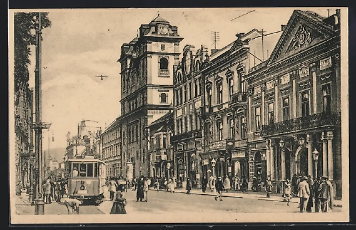 AK Kaschau, Strassenbahn in der Hauptstrasse