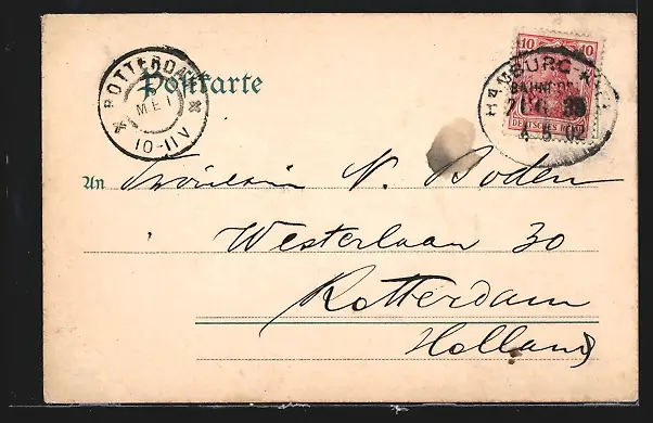alte Ansichtskarte, gelaufen 1902, Bugspur rechts unten, guter Zustand