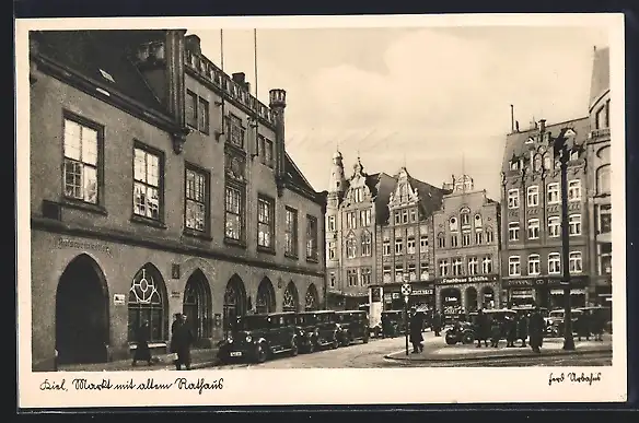 AK Kiel, Markt mit altem Rathaus & Häusern
