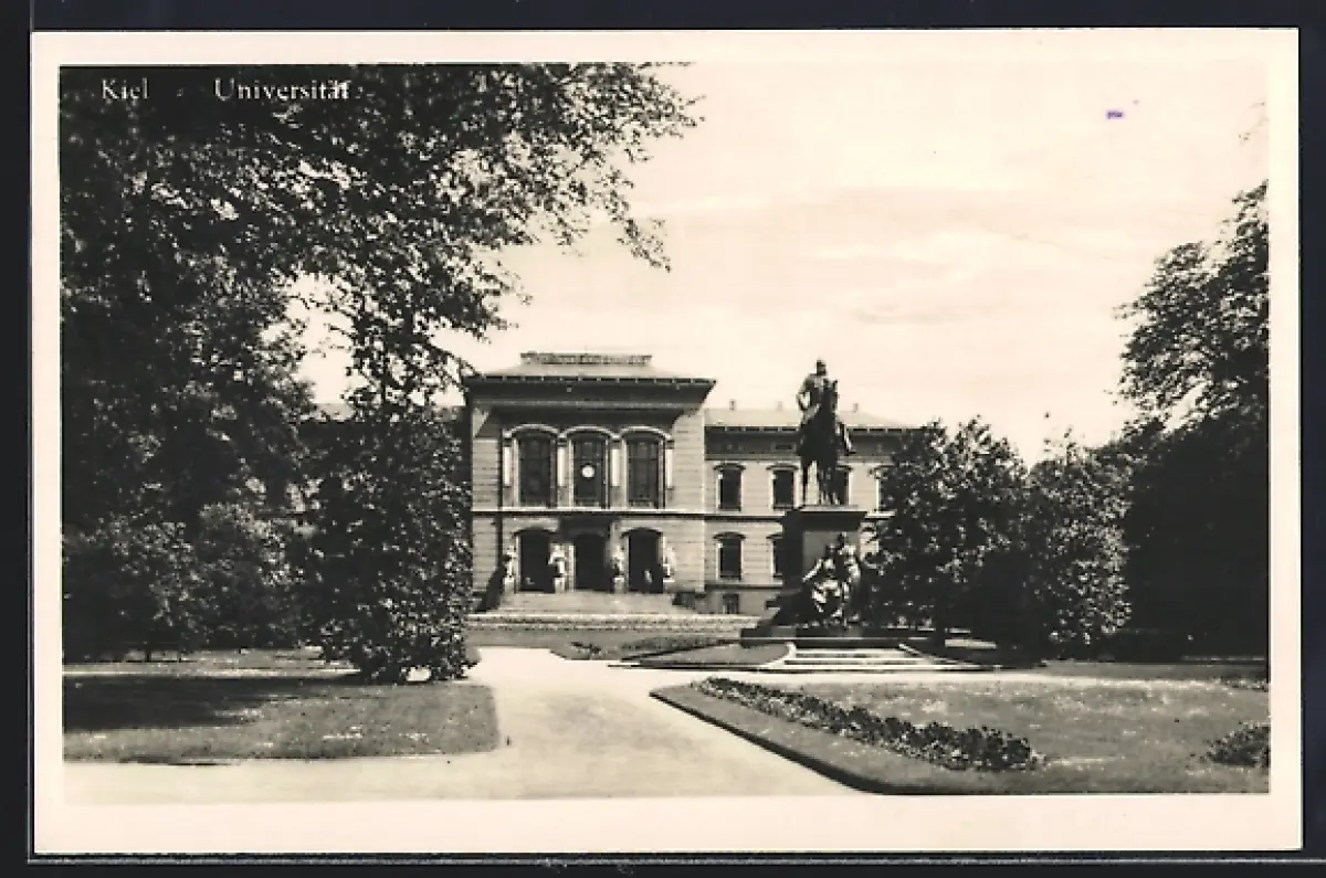 AK Kiel, Universität mit Reiterdenkmal u. Anlage