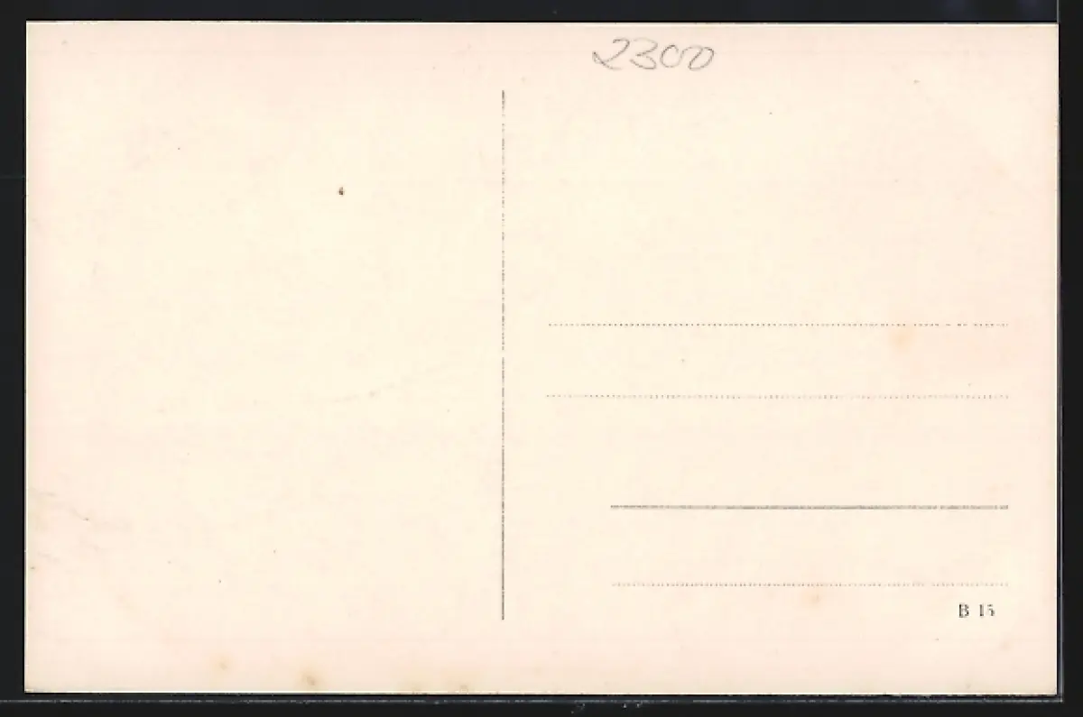 Personenbezogene Daten auf der Rückseite der Karte wurden durch blauen Textmarker unkenntlich gemacht. Die blauen Stellen sind auf die Vorderseite durchgeweicht und wirken sich negativ auf das Postkartenfoto aus