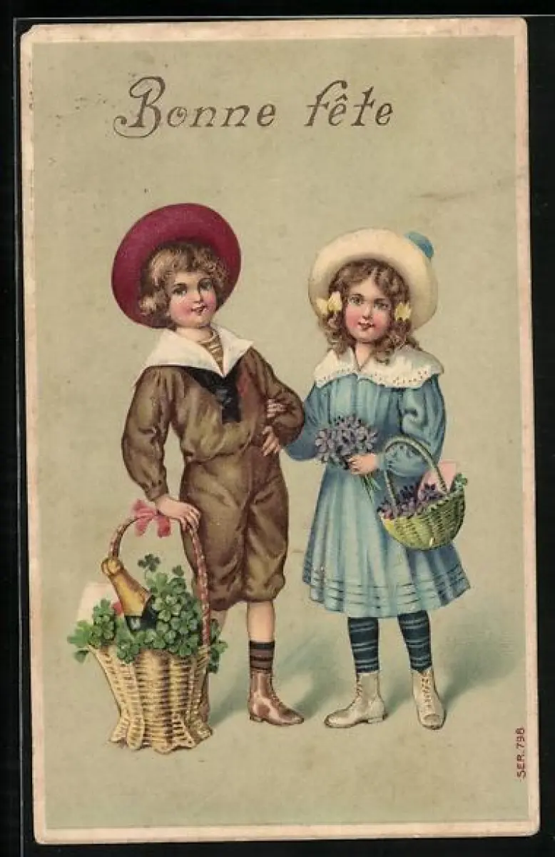 AK Kinder mit Geschenkkörben