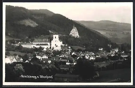 AK Kirchberg am Wechsel, Teilansicht vom Ort aus der Vogelschau