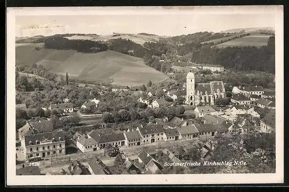 AK Kirchschlag /N. Oe., Strassenpartie mit Kirche