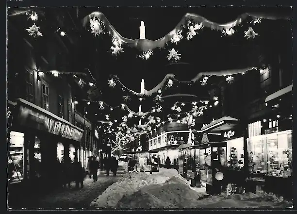 AK Klagenfurt, Nächtliche Einkaufspassage mit Weihnachtsschmuck und Schnee