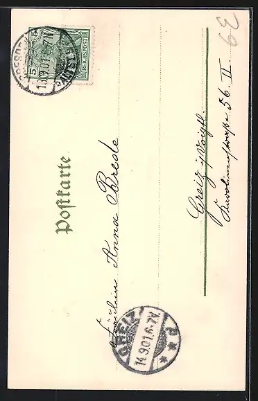 alte Ansichtskarte, gelaufen 1901, guter Zustand