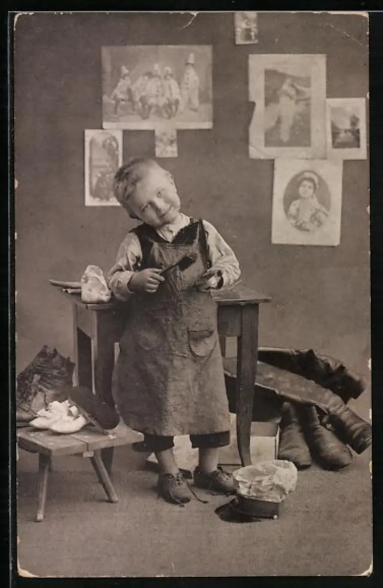 AK Kleiner Schuhmacherjunge putzt die Schuhe