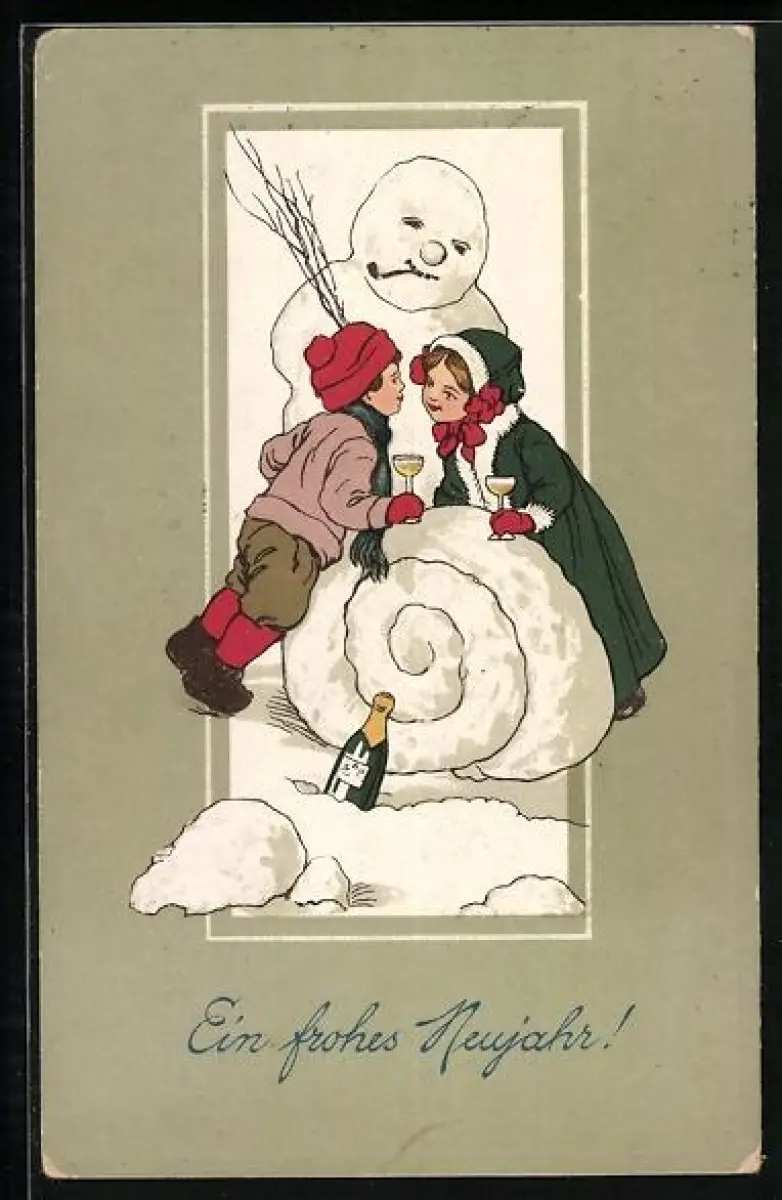 AK Kleines Paar kommt sich Beim Bau eines Schneemanns näher