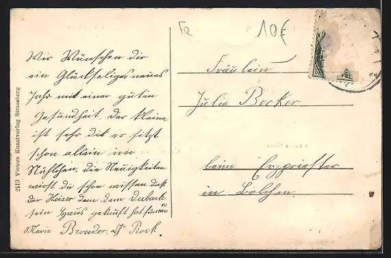 alte Ansichtskarte, gelaufen, Briefmarke entfernt, guter Zustand