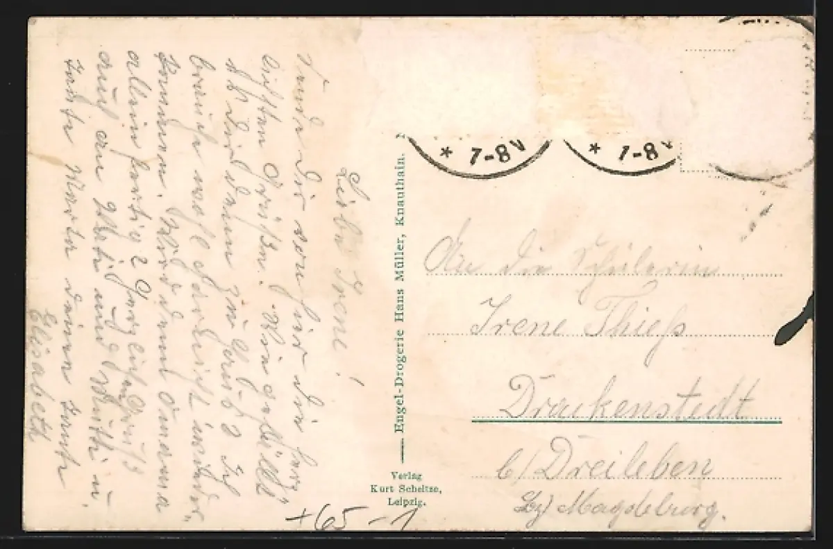 alte Ansichtskarte, ungelaufen, Briefmarke entfernt, rückseitig Oberflächenschaden, sonst guter Zustand