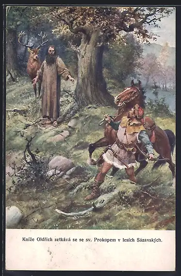 AK Knize Oldrich setkává se se sv. Prokopem v lesich Sázavskych