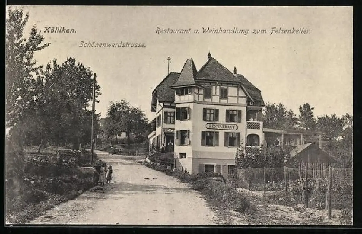 AK Kölliken, Restaurant u. Weinhandlung zum Felsenkeller, Schönenwerdstrasse