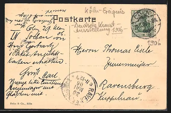 alte Ansichtskarte, gelaufen 1906, guter Zustand