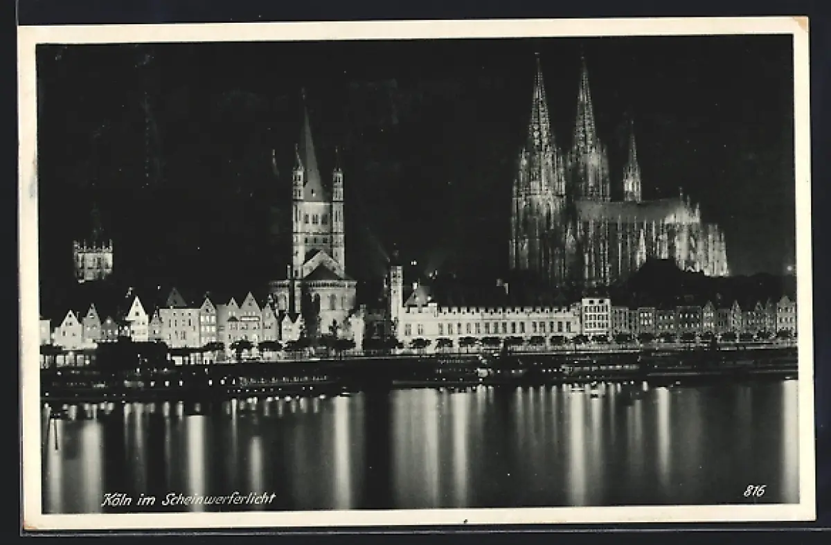 AK Köln, Dom und Altstadt im Scheinwerferlicht