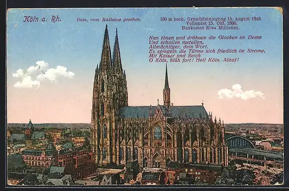 AK Köln, Dom, vom Rathaus gesehen