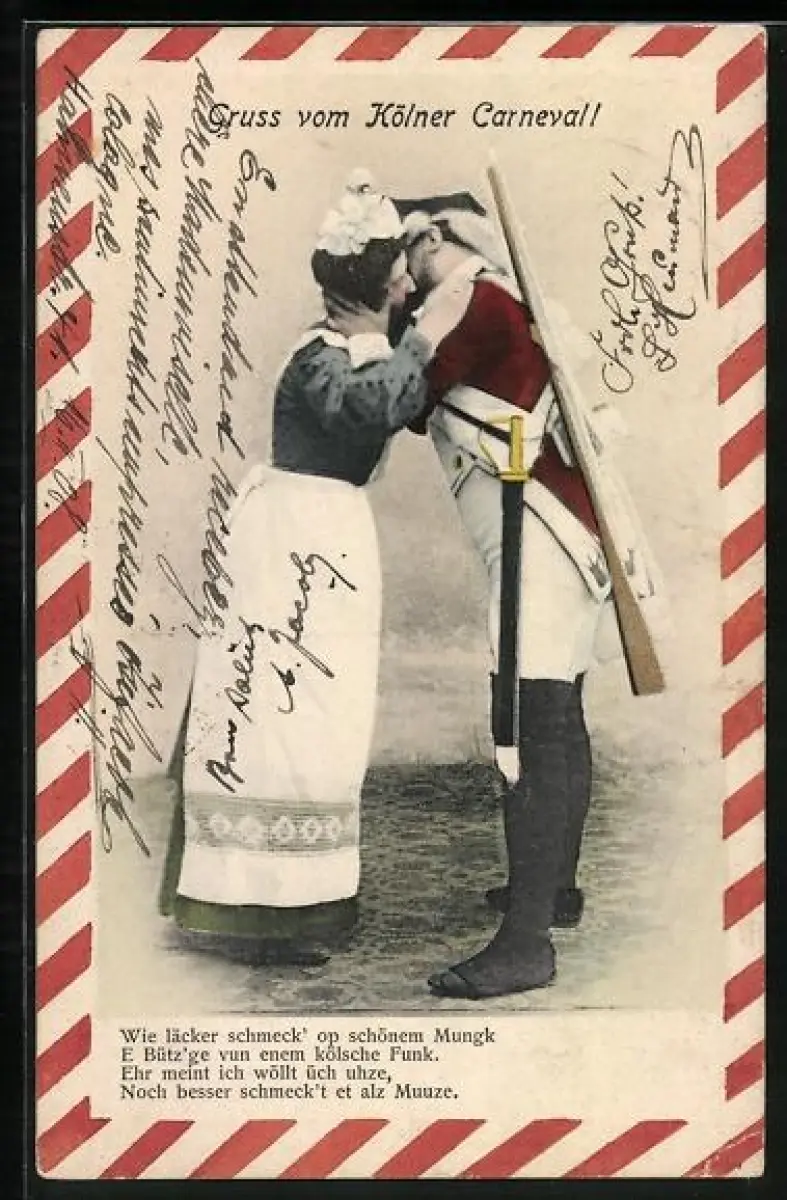 AK Köln, Kölscher Funk küsst eine Frau, Gruss vom Kölner Carneval