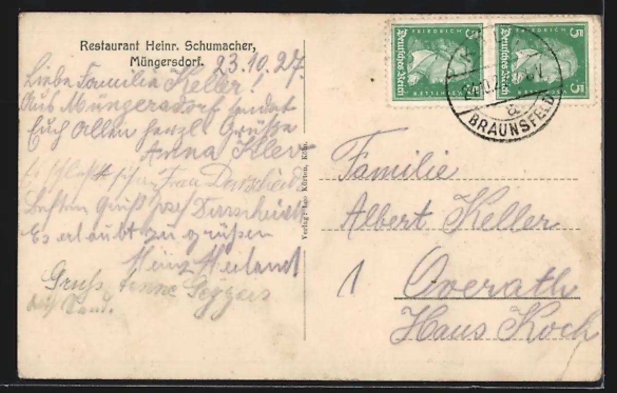 AK Köln-Müngersdorf, Gasthaus von Heinrich Schumacher