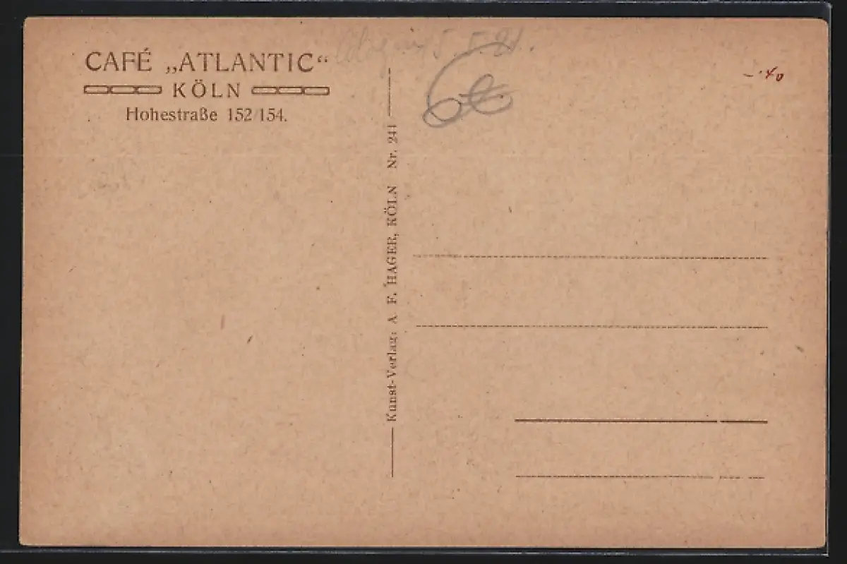 AK Köln, Speisesaal des Café Atlantic, Hohestrasse 152/154