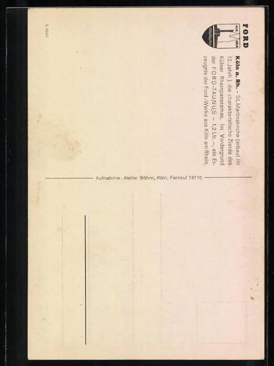 AK Köln a. Rh., Ford-Auto an der St. Martinskirche