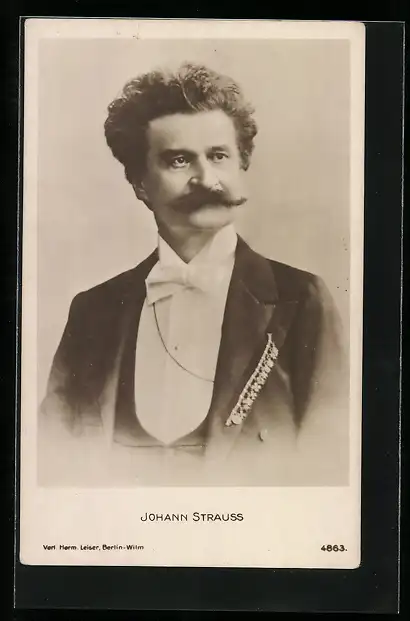 AK Komponist Johann Strauss mit Schnurrbart und elegantem Frack