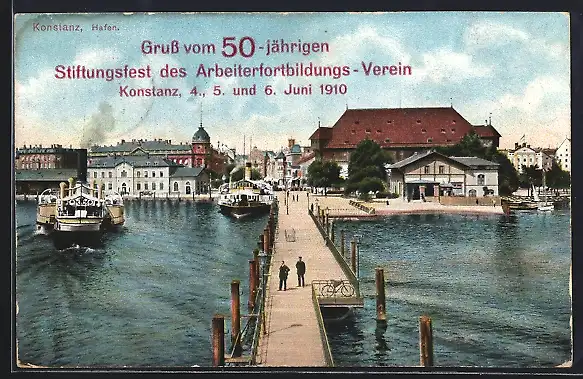 AK Konstanz, Schiffe im Hafen, Blick vom Steg