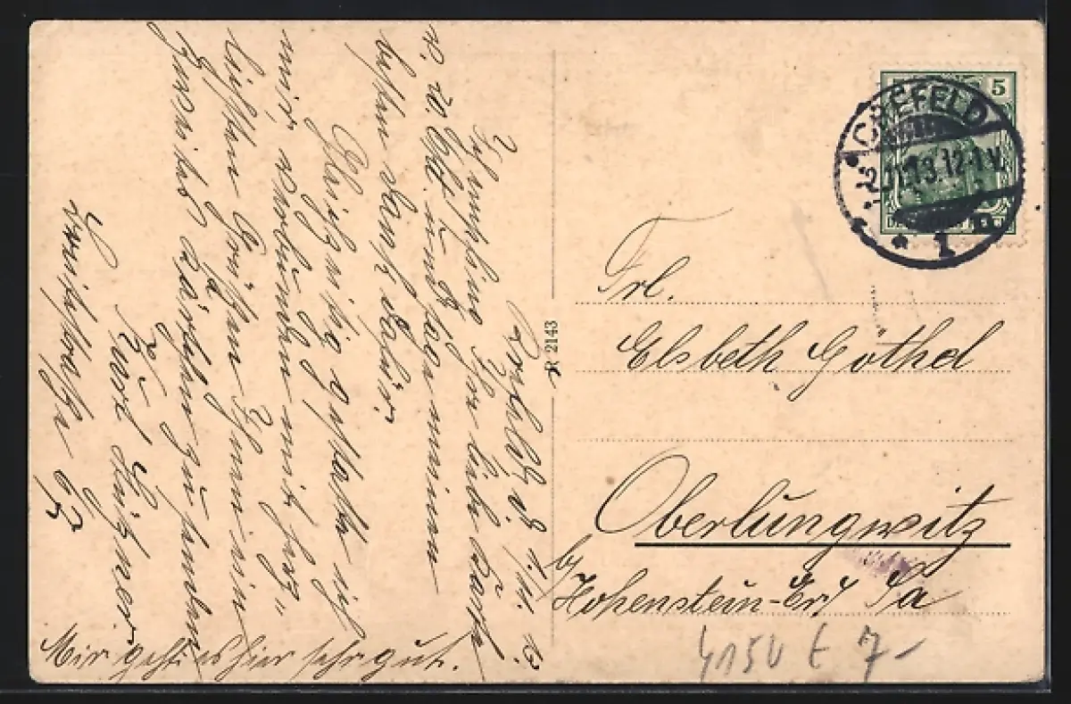 alte Ansichtskarte, gelaufen 1913, Eckknicke oben, Stempelspur, guter Zustand