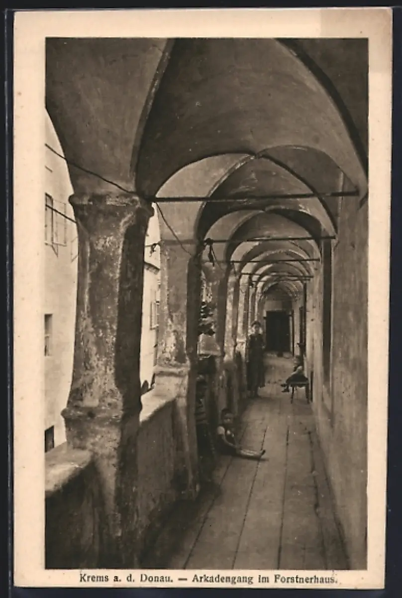 AK Krems a. d. Donau, Arkadengang im Forstnerhaus, Badgasse 4