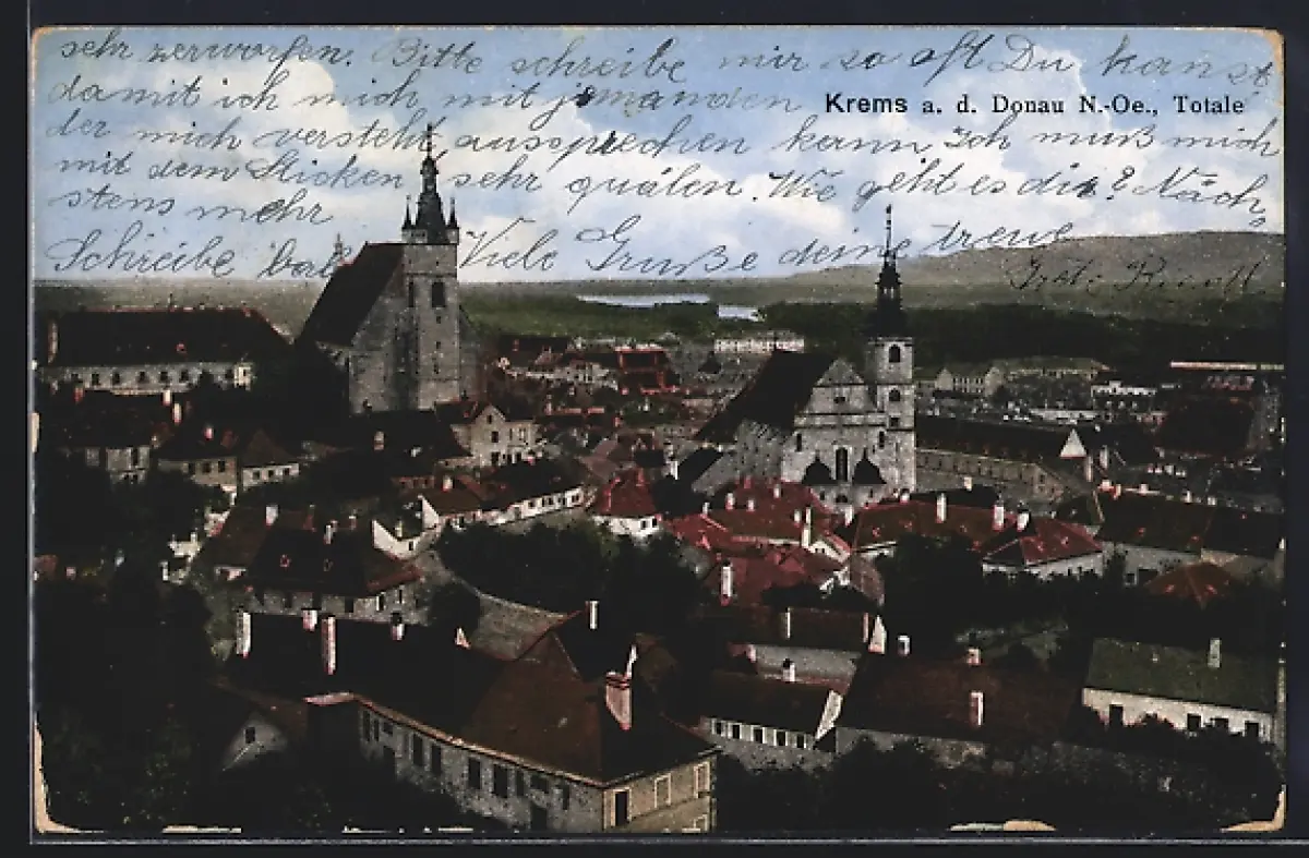 AK Krems a. d. Donau, Totalansicht mit Kirche