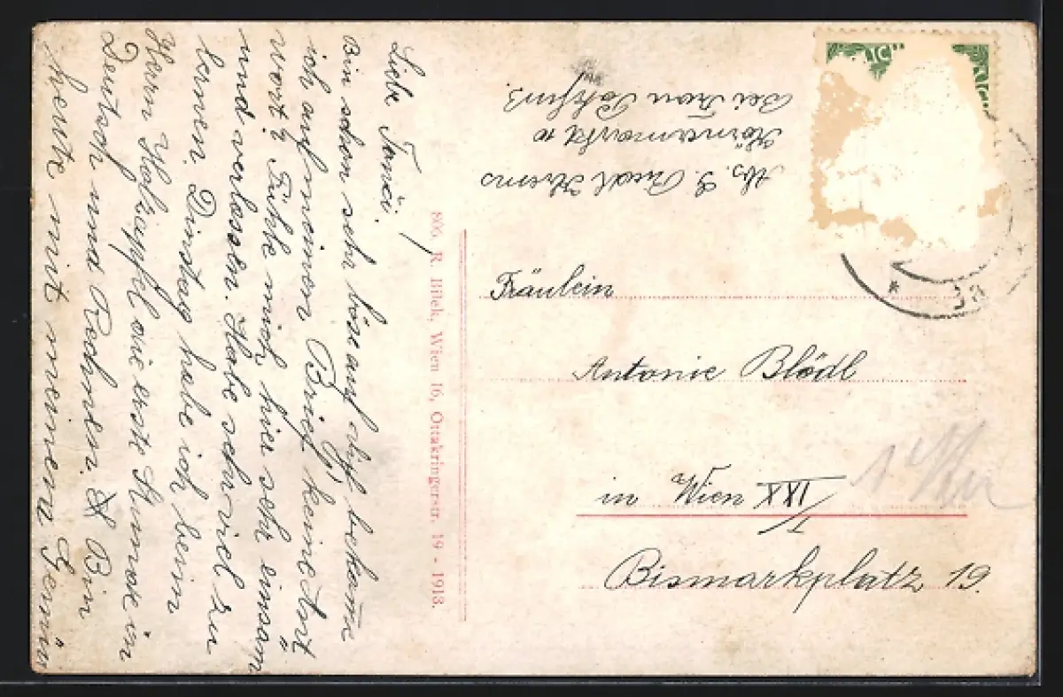 alte Ansichtskarte, gelaufen, Briefmarke entfernt, rückseitig Oberflächenschaden, guter Zustand