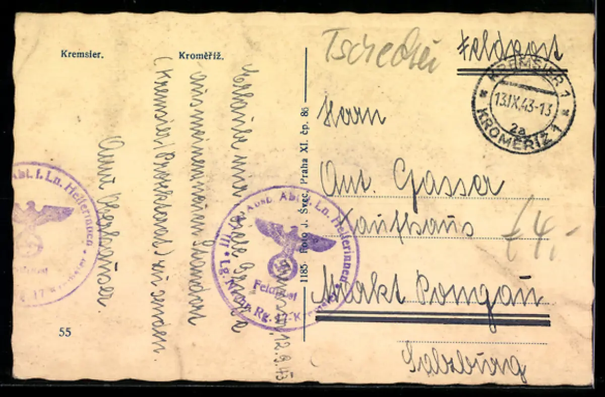 alte Ansichtskarte, gelaufen 1943 als Feldpost, Eckknick rechts oben, guter Zustand