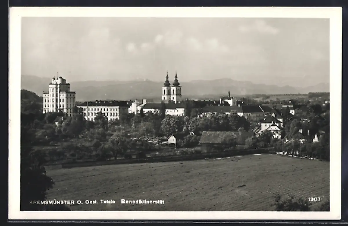 AK Kremsmünster /O. Oest., Totalansicht mit Benediktinerstift