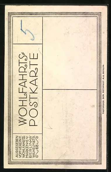 Personenbezogene Daten auf der Rückseite der Karte wurden durch blauen Textmarker unkenntlich gemacht. Die blauen Stellen sind auf die Vorderseite durchgeweicht und wirken sich negativ auf das Postkartenfoto aus