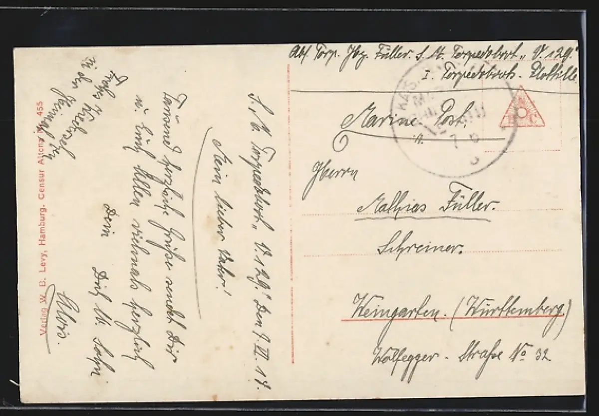 AK Kriegsschiff S.M.S. Kaiser, Reichskriegsflagge und Anker