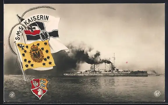 AK Kriegsschiff S.M.S. Kaiserin, Fahnen und Wappen