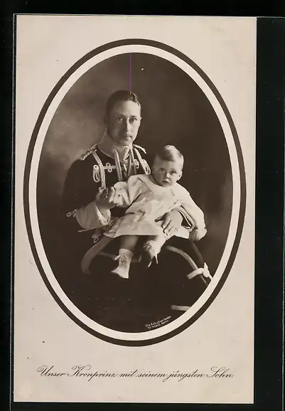 AK Kronprinz Wilhelm von Preussen in Uniform mit seinem jüngsten Sohn auf dem Schoss