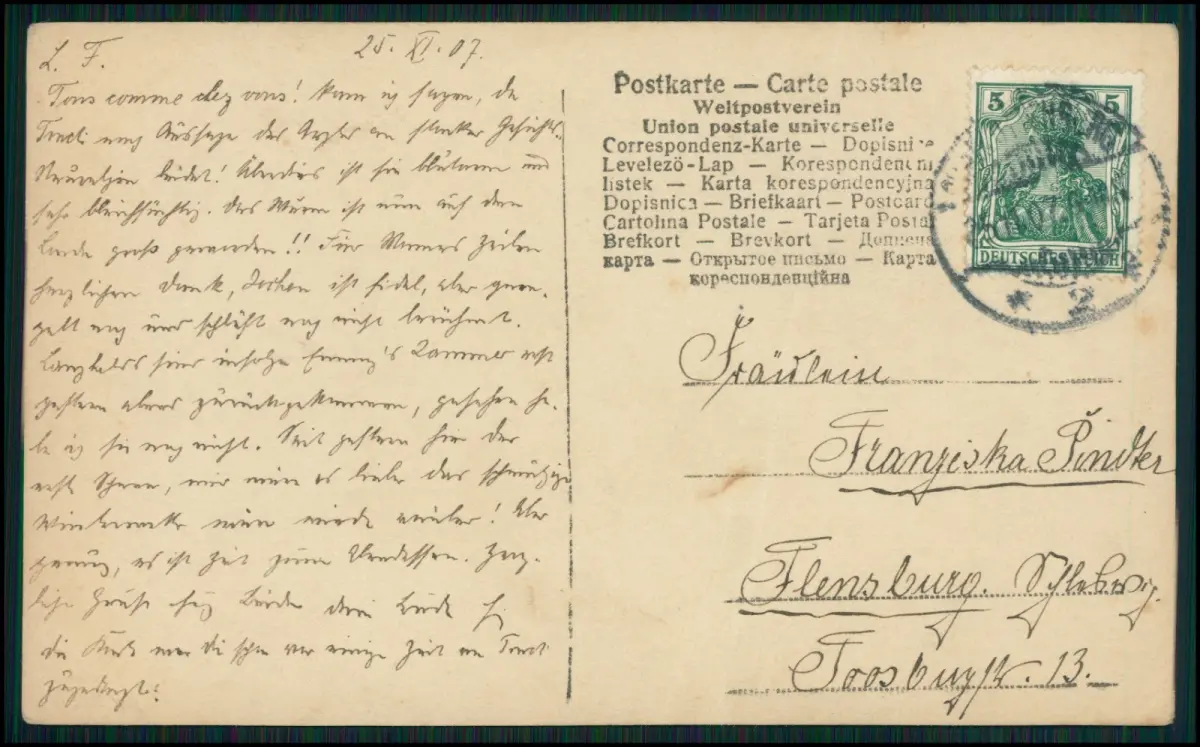Mit handschriftlichem Text und zeitgenössischer 5-Pfennig-Frankatur des Deutschen Reichs. Lesbarer Stempel, postalisch gelaufen.