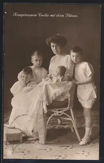 AK Kronprinzessin Cecilie auf Stuhl umgeben von ihren Söhnen