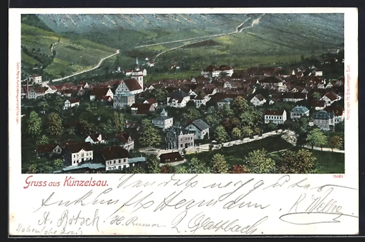 AK Künzelsau, Teilansicht mit Strassenpartie