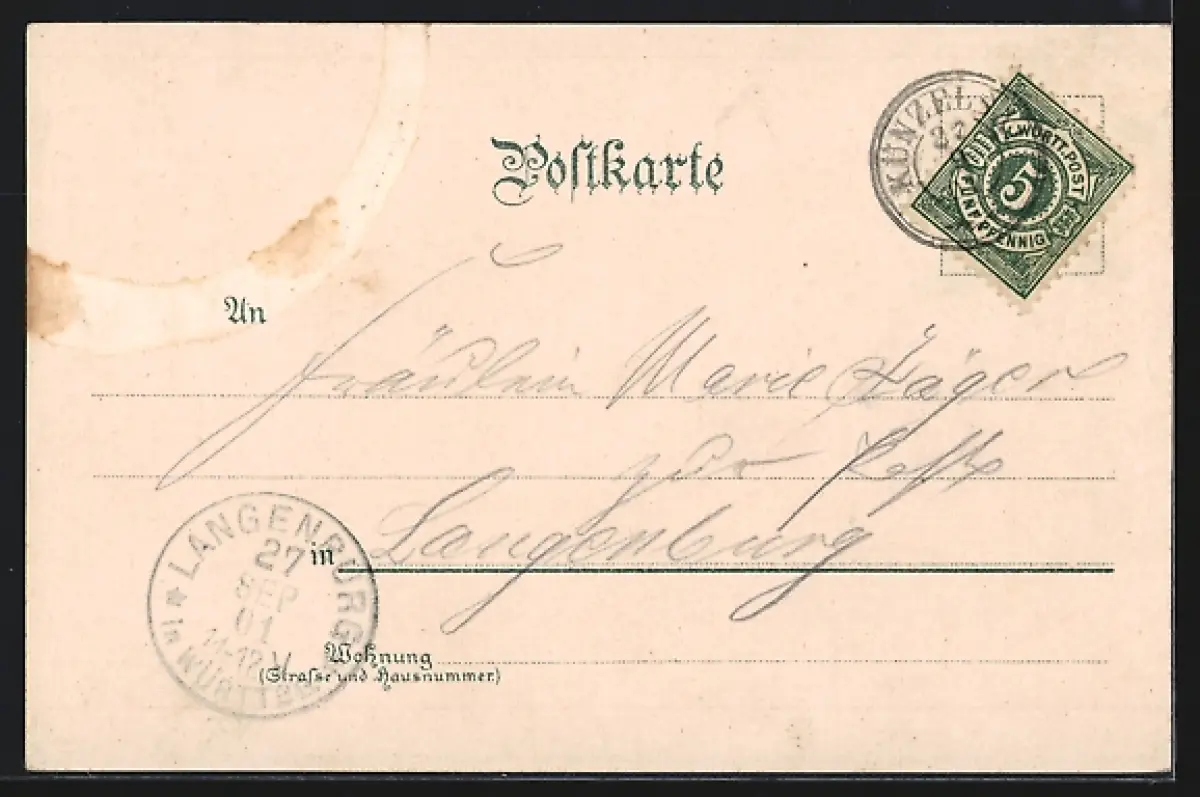 alte Ansichtskarte, gelaufen 1901, rückseitig Oberflächenschaden, guter Zustand