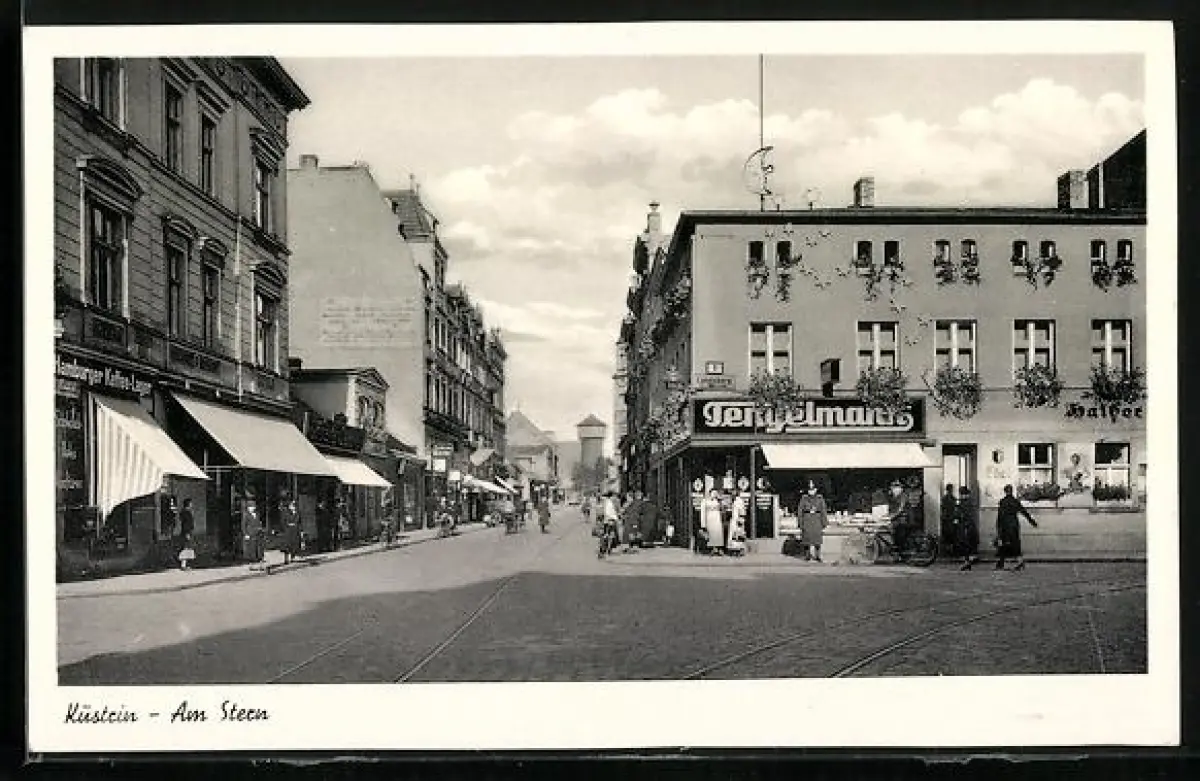 AK Küstrin, Am Stern, Geschäft Tengelmann und Hamburger Kaffee-Lager