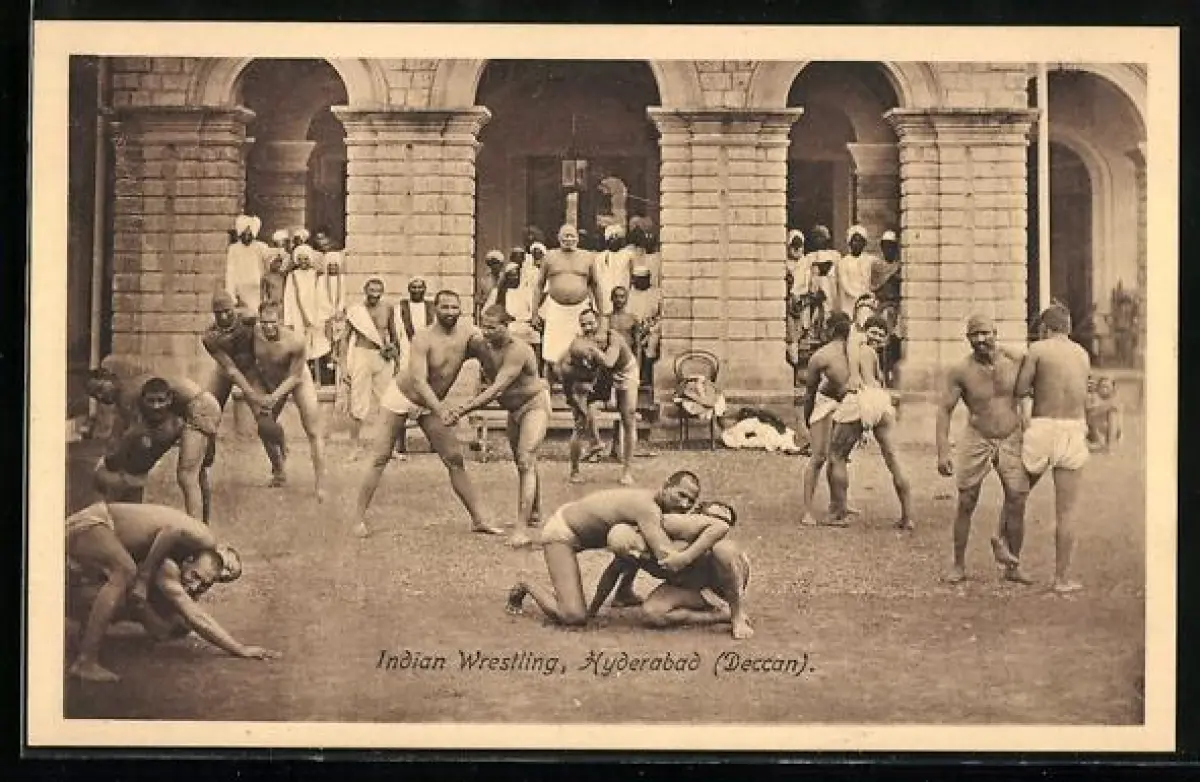 AK Kyderabad /Deccan, Männer beim Ringen