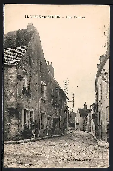 AK L`Isle-sur-Serein, Rue Vauban avec bâtiments anciens et pavés